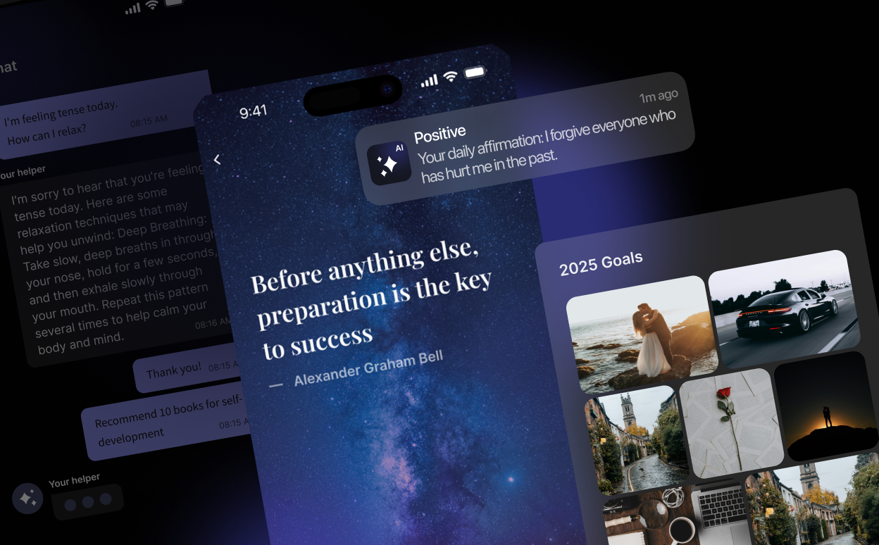 The project was designed as a digital assistant for those who seek personal growth, self-organization, and positive thinking.